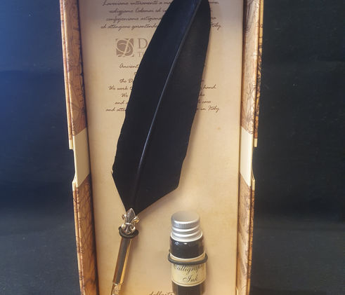 Made in Italy these feather quill pens are superbly made and easy to use. The writing implement of choice in medievel times, quills are still popular today.Quill users understand that there is nothing nicer than receiving a note, card or letter handwritten in ink, these are the messages that will transcend generations and be considered precious in a world where electronics cannot capture the essence of the author.